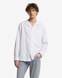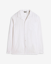 Fits like: A relaxed-fit lounge shirt with a straight hem and an easygoing silhouette. Feels like: Light, airy, and ideal for staying cool during spring to summer. The Details: - Classic camp collar with a laid-back vibe - Straight hem for untucked styling - Long Sleeve - Crisp white shade FABRIC & CARE - 60% Cotton, 40% Linen - Machine wash cold inside out with like colors, lay flat to dry Imported