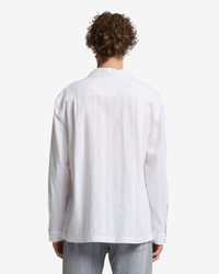 Linen Blend Long Sleeve Camp Shirt in White