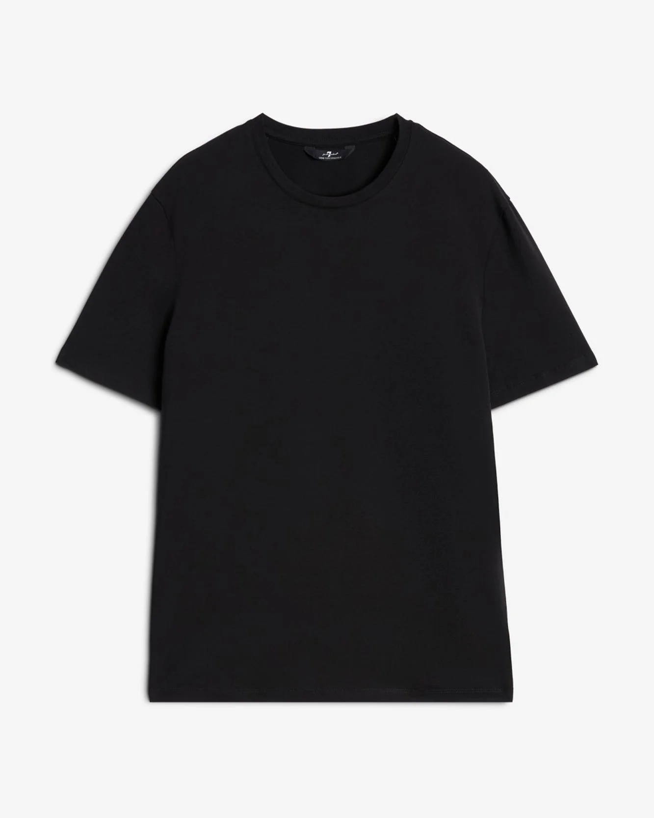 Fits like: The perfect tee - not too fitted, not too relaxed. Feels like: Lightweight breathable cotton with a soft touch and comfortable stretch. The Details: - Black shade - Crewneck - Short Sleeve - Easy T-shirt silhouette MEASUREMENTS - Based on size Medium - Length: 28" - Chest: 42.5" - Sweep: 41.75" - Measurements may vary based on size, fabric, and wash. FABRIC & CARE - 91% Cotton, 9% Elastane - Machine wash cold inside out with like colors, lay flat to dry - Imported