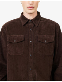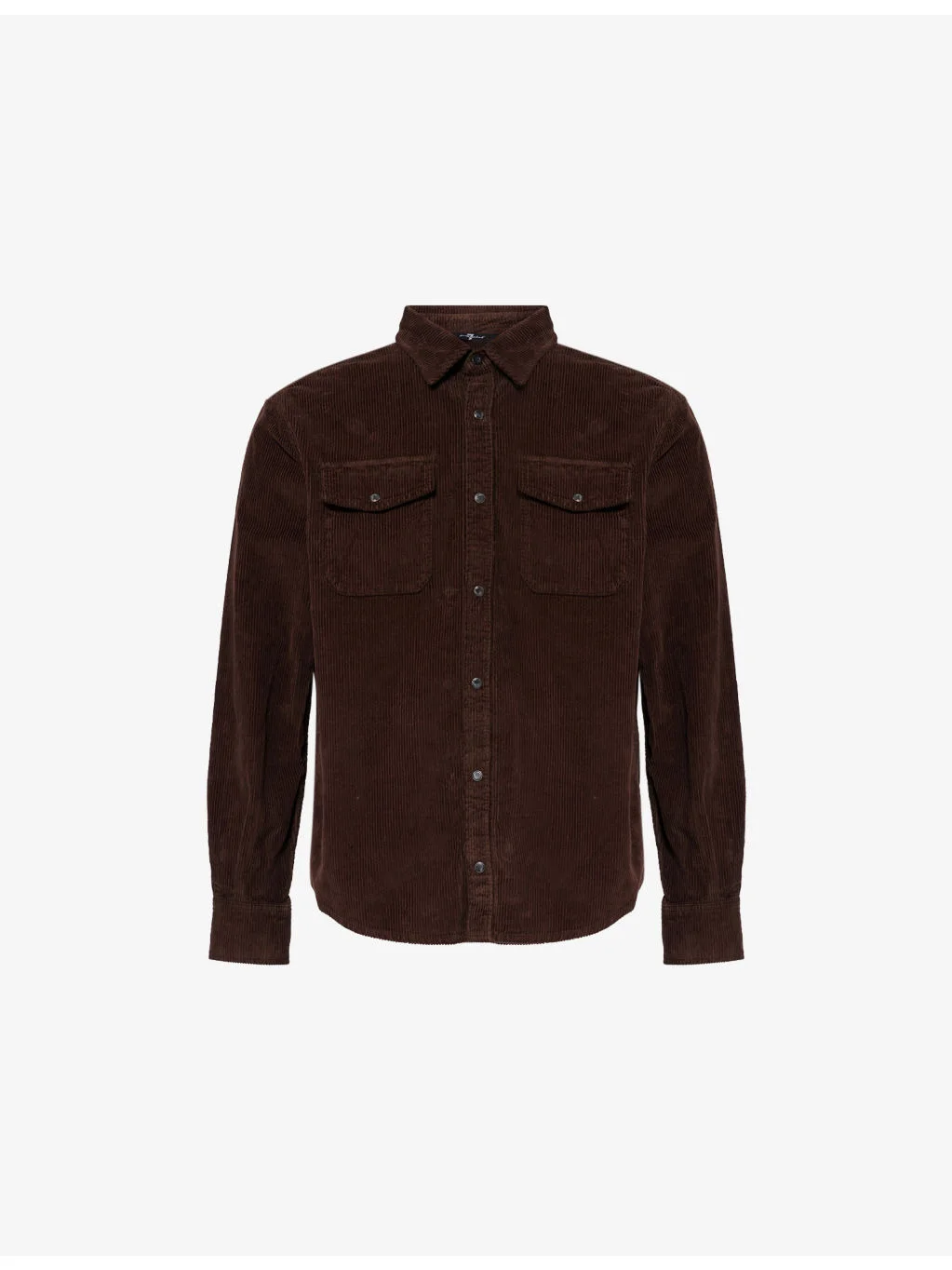 PRODUCT DETAILS - 7 For All Mankind cotton corduroy overshirt - 98% cotton, 2% elastane - Exposed popper fastenings at front - Regular fit, pointed collar, slightly dropped shoulders, long sleeves, press-stud cuffs, two chest flap press-stud pockets, corduroy texture - Machine wash at 30°C - Model is 6ft 2in/1.88m and wears a size medium - Lightweight, non-stretch Ref: R04535954