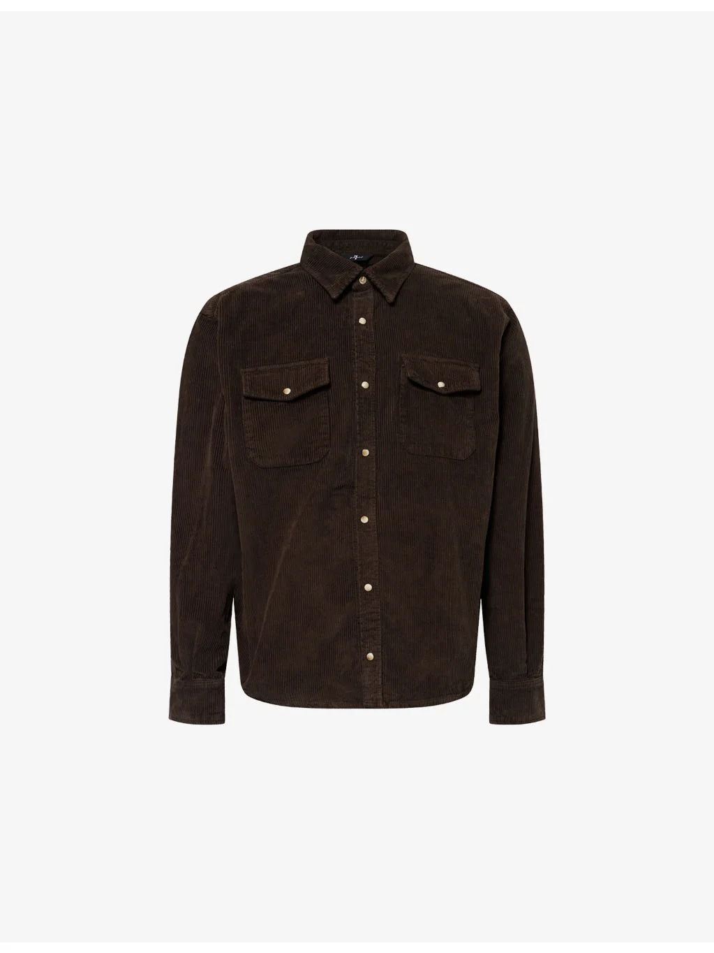 PRODUCT DETAILS - 7 For All Mankind corduroy overshirt - 98% cotton, 2% elastane - Exposed pressed stud fastenings at front - Regular fit, pointed collar, long sleeves, press-stud cuffs, two chest flap press-stud pockets, corduroy texture - Machine wash at 30°C - Model is 6ft 2in/1.88m and wears a size medium - Midweight, stretchy Ref: R04535953