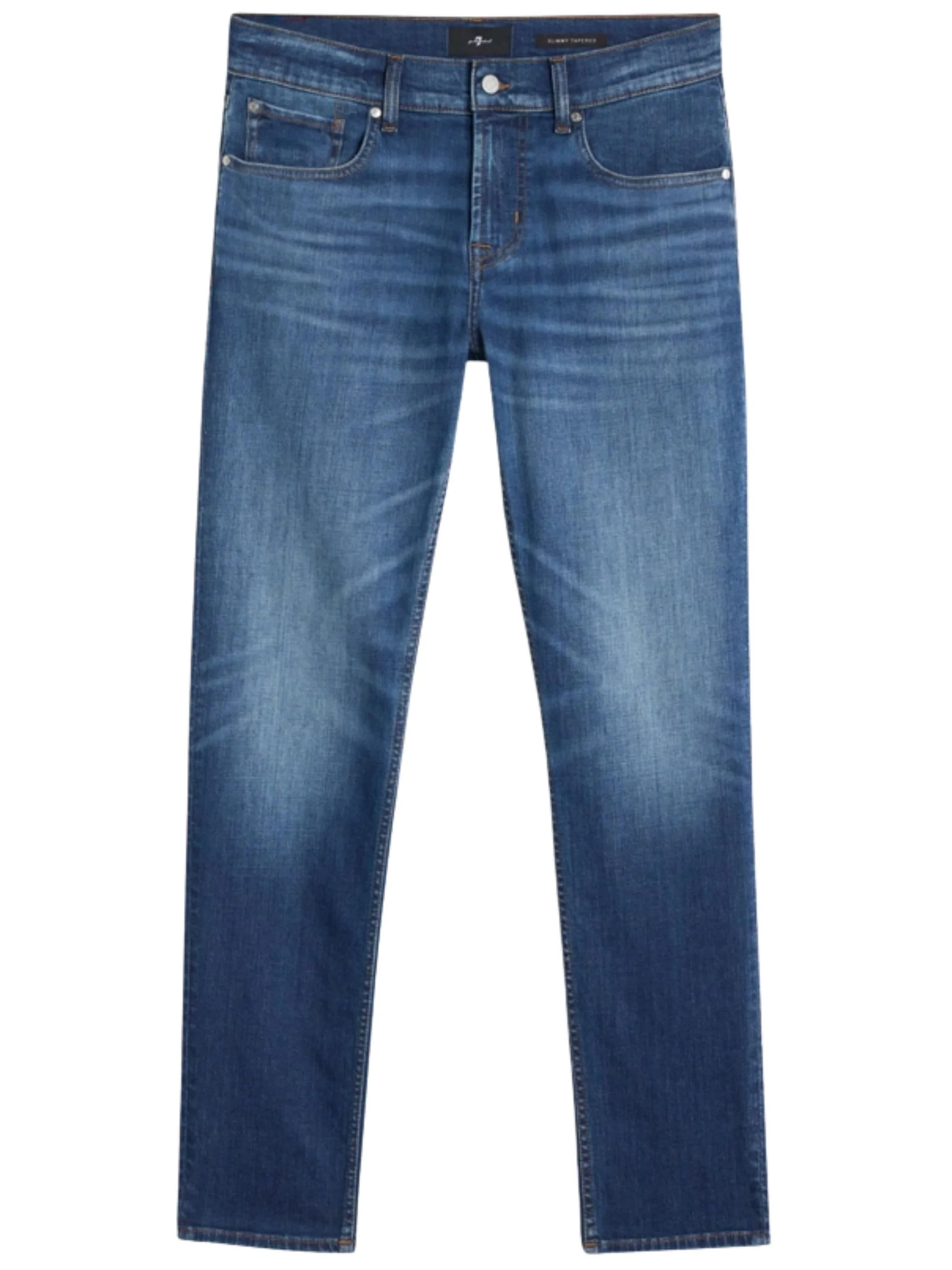 Slimmy Tapered Jeans [ SKU: 11459389158 ] The Slimmy Tapered Jeans by 7 FOR ALL MANKIND epitomize modern sophistication in denim. Crafted for the discerning individual, these jeans feature a sleek, tapered silhouette that enhances your silhouette and provides a polished look. Perfect for both casual outings and more refined events, pair them with a crisp white shirt and leather loafers for a effortlessly stylish ensemble. Elevate your wardrobe with these essential jeans that embody both versatility and contemporary elegance. Composition 97% COTTON 3% ELASTANE Reference 7TB00C12U71VV Made in United Arab Emirates
