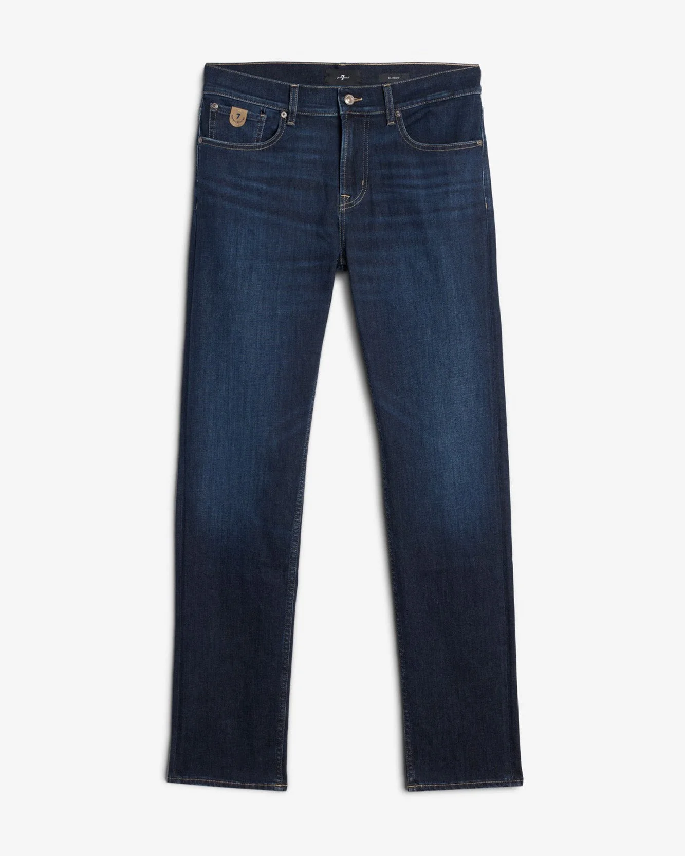 Fits like: A classic slim fit from hip to hem, for a look that's streamlined but not too skinny. The Details: - Dark indigo wash - Zip closure - Signature squiggle back pocket embroidery - Subtle whiskering and sanding along the thighs MEASUREMENTS - Based on size: 32 - Rise: 10.5" - Leg Opening: 14.5" - Approx. Inseam: 33" - Measurements may vary based on size, fabric, and wash. FABRIC & CARE - 86% Cotton, 13% Polyester, 1% Elastane - Machine wash cold inside out with like colors, lay flat to dry - Imported
