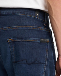 Fits like: A bootcut jean in a dark indigo wash, offering a relaxed fit with a flattering, tailored shape that’s not oversized. Feels like: Made with premium denim fabric, this jean offers a soft hand-feel with the right amount of stretch, ensuring all-day comfort and flexibility. The Details: - Dark indigo wash - 5 pocket design - Zip closure - Subtle whiskering and fading along the thighs - Signature 7 back pocket squiggle embroidery MEASUREMENTS - Based on size: 32 - Rise: 10.5" - Leg Opening: 18.5" - Approx. Inseam: 34.25" - Measurements may vary based on size, fabric, and wash.