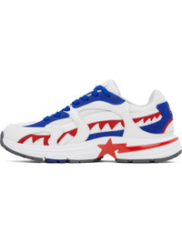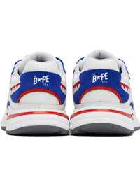 Low-top mesh, suede, patent and buffed leather sneakers in white, blue, and red. · Logo-embossed rubber cap toe · Lace-up closure · Padded tongue and collar · Logo embossed at tongue and heel tab · Graphic applique at sides · Logo flag at outer side · Mesh lining · Logo applique at foam rubber midsole · Treaded rubber sole Supplier color: White