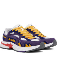 Low-top mesh, suede, patent and buffed leather sneakers in blue, purple, white, and yellow. · Logo-embossed rubber cap toe · Lace-up closure · Padded tongue and collar · Logo embossed at tongue and heel tab · Graphic applique at sides · Logo flag at outer side · Mesh lining · Logo applique at foam rubber midsole · Treaded rubber sole Supplier color: Blue