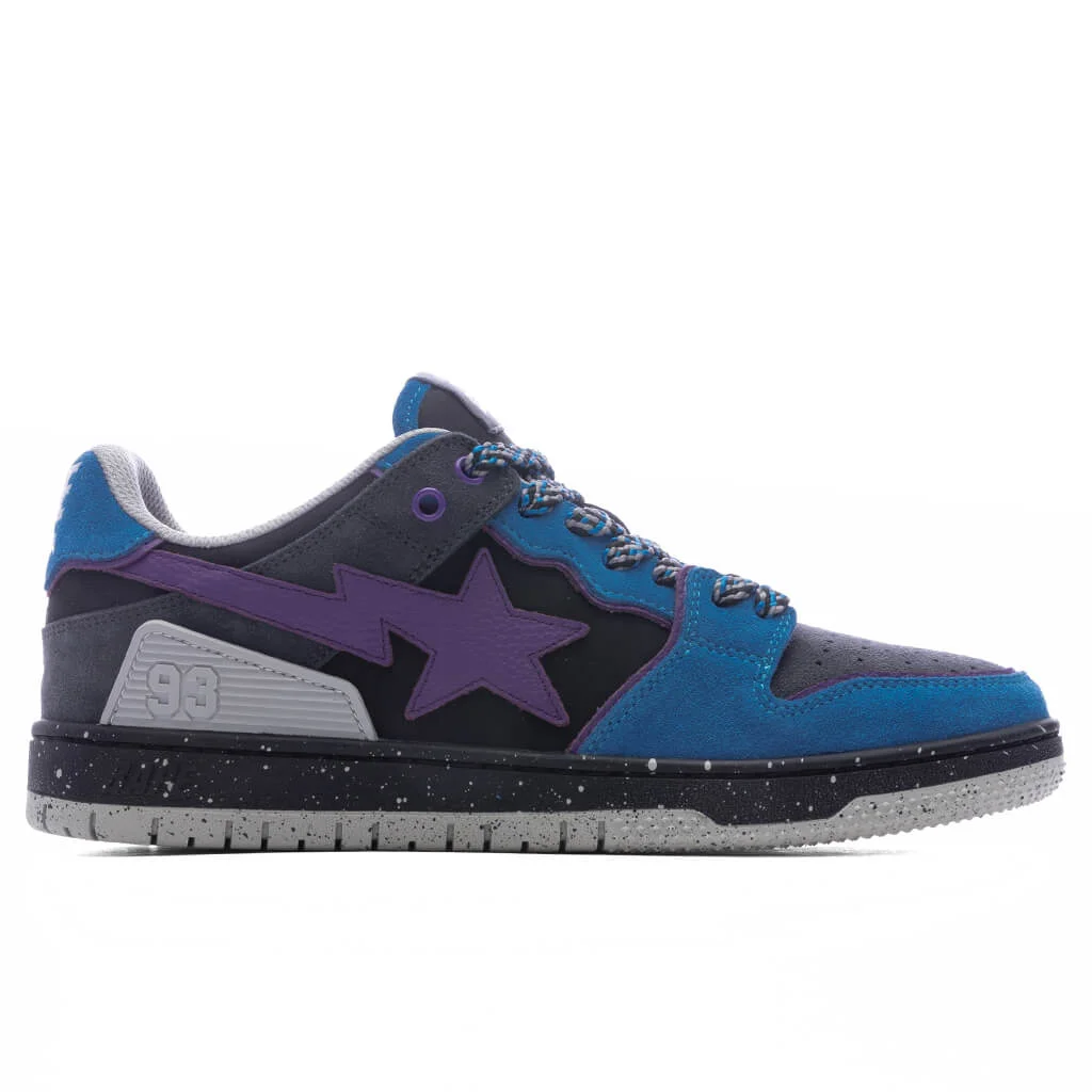 The Bape SK8 STA #1 M2 merges luxury materials with iconic design cues for a bold yet refined look. This sneaker features a nubuck upper with leather star logo applique at the sides. A rubber applique, logo patch at the padded tongue, and branded heel and heel tab reinforces its heritage. The shoe is finished with a perforated toe box, cushioned midsole, and treaded rubber outsole. EXCLUDED FROM 12 DAYS OF FEATURE PROMO. - Nubuck upper - Leather overlays - Low padded collar - Label patch at tongue - Star logo applique at sides - Rubber applique - Branding on heel tab and heel - Perforated toe box - Rubber outsole - All sizes are listed in U.S. Men's sizing unless stated otherwise - Style No: 001FWL301313M-BLU
