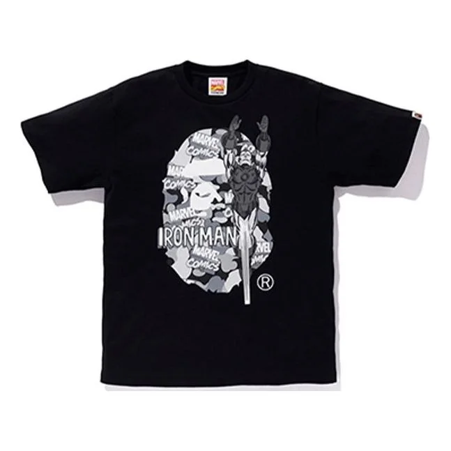 A Bathing Ape x Marvel Camouflage Ape Head Logo T-Shirt 'Black Iron Man' 1F23110928