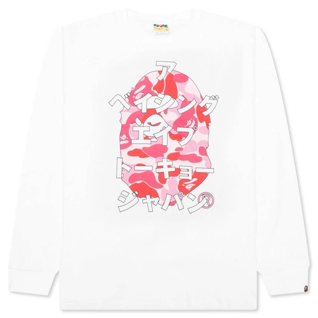 ABC CAMO JAPANESE LETTERS L/S TEE - WHITE/PINK