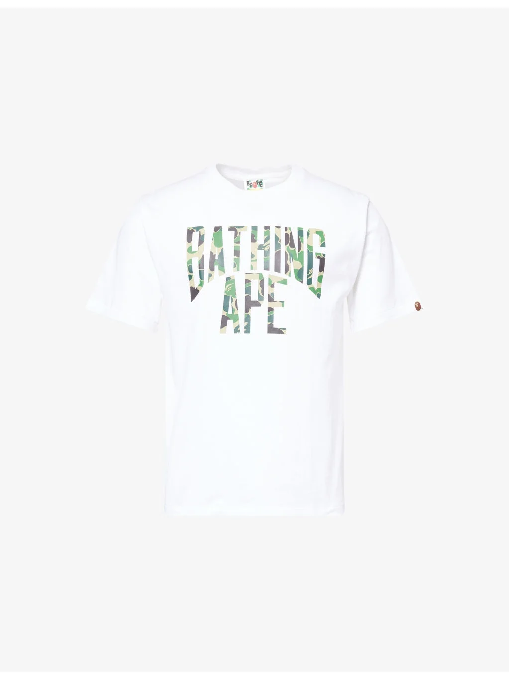 PRODUCT DETAILS - A Bathing Ape cotton-jersey T-shirt - 100% cotton - Regular fit, crewneck, ribbed trim at neck, short sleeves, brand embroidered tab at sleeve, logo print at front - Machine wash cold - Model is 6ft 2in/1.88m and wears a size medium - Lightweight, slight stretch Ref: R04438005