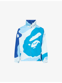 PRODUCT DETAILS - A Bathing Ape nylon jacket - 100% nylon - Zip fastening - Regular fit, funnel neck, concealed hood, long sleeves, elasticated sleeve hems, zip pockets at front, camo pattern, drawstring hem, branded hardware - Machine wash cold - Size medium: length 26in / 66cm, chest 55in / 140cm - Model is 6ft 2in/1.88m and wears a size medium - Lightweight, non-stretch Ref: R04437982
