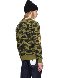Cotton fleece sweatshirt. Logo graphic camouflage pattern printed throughout. - Rib-knit crewneck, hem, and cuffs - Graphic embroidered and printed at front - Printed graphic and embroidered appliques at sleeves - Logo flag at cuff Supplier color: Green