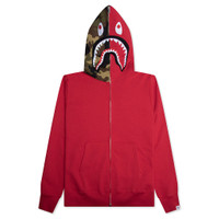 A Bathing Ape presents the 1st Shark Full Zip Hoodie—the newest addition to its iconic Shark hoodie collection. Featuring the signature full-zip closure that extends up to the hood, the hoodies is decorated in felt and woven patches and screen-printed graphics. The hood showcases the Shark face logo and BAPE branding. Finished with ribbed trims and a kangaroo pocket. - 100% Cotton - Full zip closure to hood - Two-way zipper - Ribbed trims - Kangaroo pocket - Felt patches/woven patches - Screen-printed graphics - BAPE branding - Woven brand tag at hem - Style No: 001ZPK701005M-RED