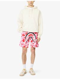 PRODUCT DETAILS - A bathing Ape cotton sweat shorts - 100% cotton - Pulls on - Relaxed fit, elasticated drawstring waist, side pockets, shark and camouflage print - Machine wash mild - Model is 6ft 2in/1.88m and wears a size medium - Midweight, slight stretch Ref: R04437936