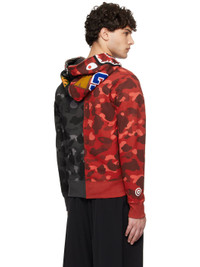 Red & Black Color Camo Separate Shark Full Zip Hoodie