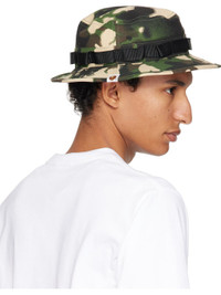 Cotton canvas bucket hat. · Logo graphic camouflage pattern throughout · Webbing daisy chain at crown · Logo flag at brim · Contrast stitching in green Supplier color: Green 100% cotton. Made in Japan 251546M140002