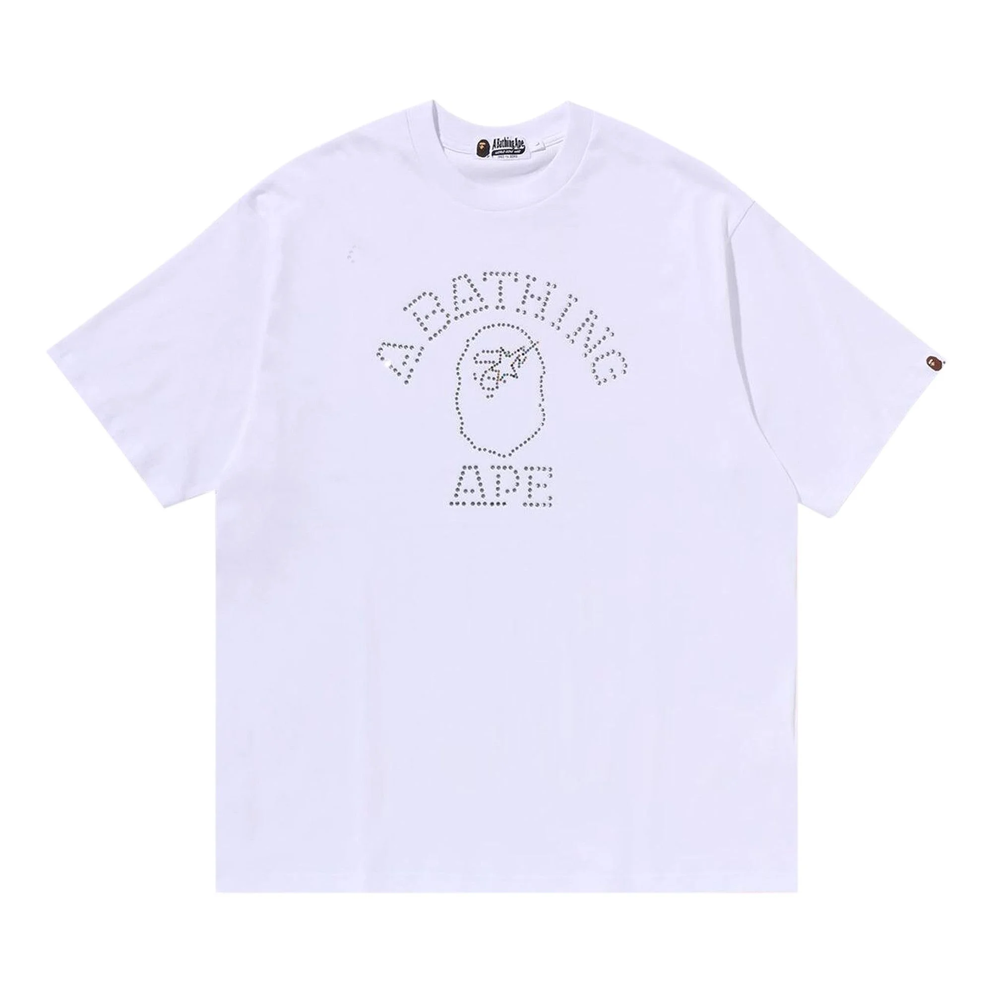 BAPE Rhinestone College Relaxed Fit Tee 'White'