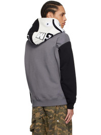 Cotton fleece hoodie. Felted, boucle, and embroidered logo graphic appliques at hood. - Two-way zip closure extends to hood - Patch pockets - Rib-knit hem and cuffs - Graphic printed at sleeve - Logo flag at cuff Supplier color: Black