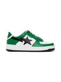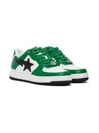 Low-top paneled buffed leather sneakers in green and white. · Perforated detailing at toe and sides · Logo plaque at lace-up closure · Logo patch at padded tongue · Padded collar · Logo embossed at heel collar and side · Logo applique at sides · Grained leather lining · Logo embossed at textured rubber midsole · Treaded rubber sole Supplier color: Green