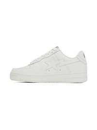 Low-top paneled buffed and pebble grained leather sneakers in white. · Perforated detailing at round toe · Logo hardware at lace-up closure · Logo patch at padded tongue · Padded collar · Logo appliqué at sides · Logo embossed at heel tab · Buffed leather lining · Logo-embossed textured rubber midsole · Treaded rubber outsole Supplier color: Iva/Ivory