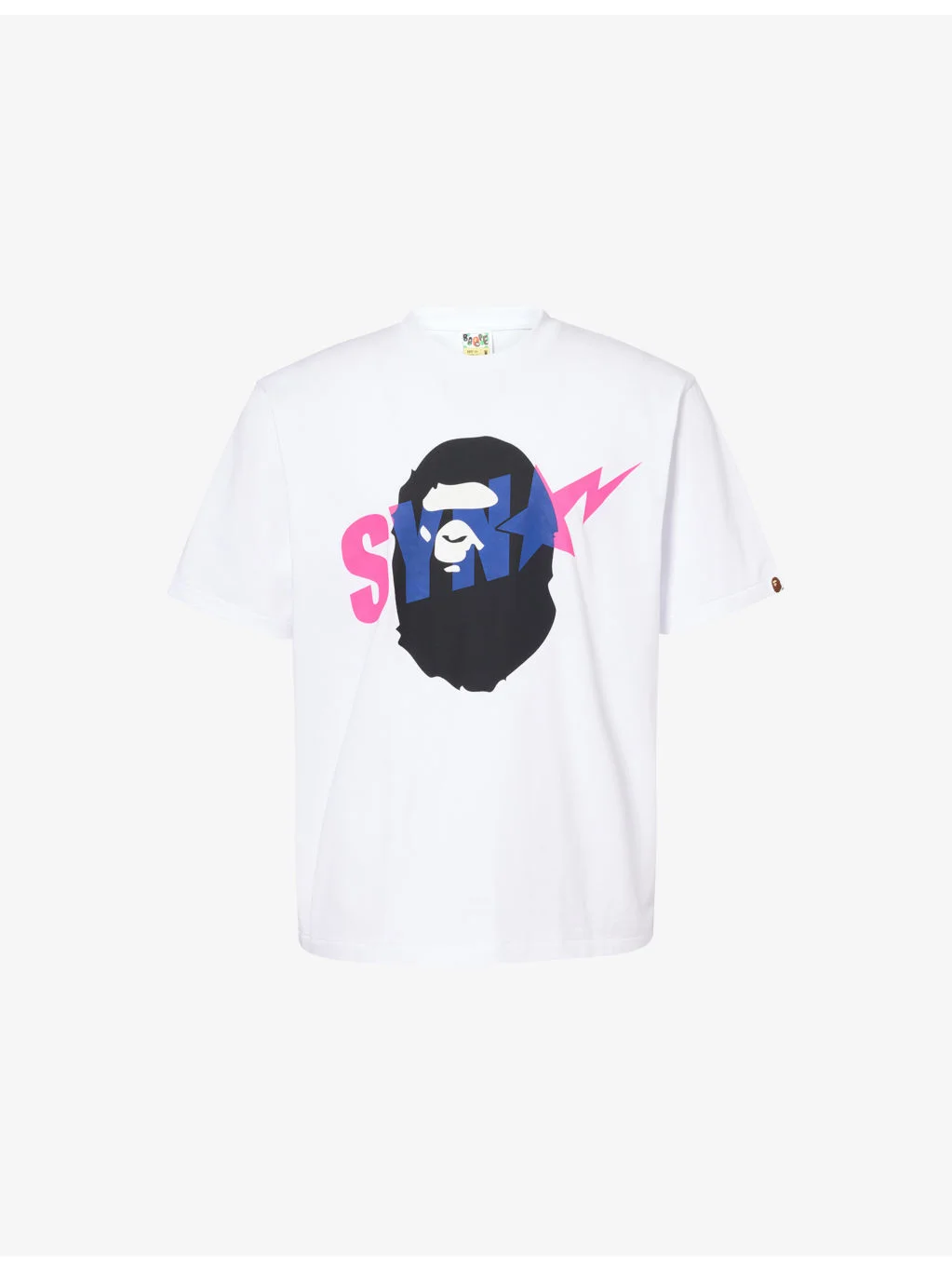 PRODUCT DETAILS - A Bathing Ape cotton-jersey T-shirt - 100% cotton - Relaxed fit, crewneck, short sleeves, dropped shoulders, Ape Head and Syna print, brand patch at cuff - Machine wash cold - Lightweight, non-stretch Ref: R04560574