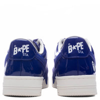 The Bape STA OS #3 M2 in Navy reimagines the classic silhouette with refined details. A leather upper pairs with patent leather overlays, adding a sleek, layered look. The exaggerated STA logo stands out against the design, while the perforated toe box enhances breathability. Finishing touches include a branded dubrae and embroidered heel for signature branding elements that elevate this timeless style. - Leather upper - Patent leather overlays - Exaggerated STA - Perforated toe box - Branded dubrae - Embroidered heal - Style No: 001FWK701310M-NVY