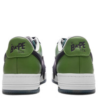 The Bape STA OS M2 in Green reimagines the classic silhouette with refined details. A leather upper pairs with patent leather overlays, adding a sleek, layered look. The exaggerated STA logo stands out against the design, while the perforated toe box enhances breathability. Finishing touches include a branded dubrae and embroidered heel for signature branding elements that elevate this timeless style. - Leather upper - Patent leather overlays - Exaggerated STA - Perforated toe box - Branded dubrae - Embroidered heal - Style No: 001FWK801309M-GRN