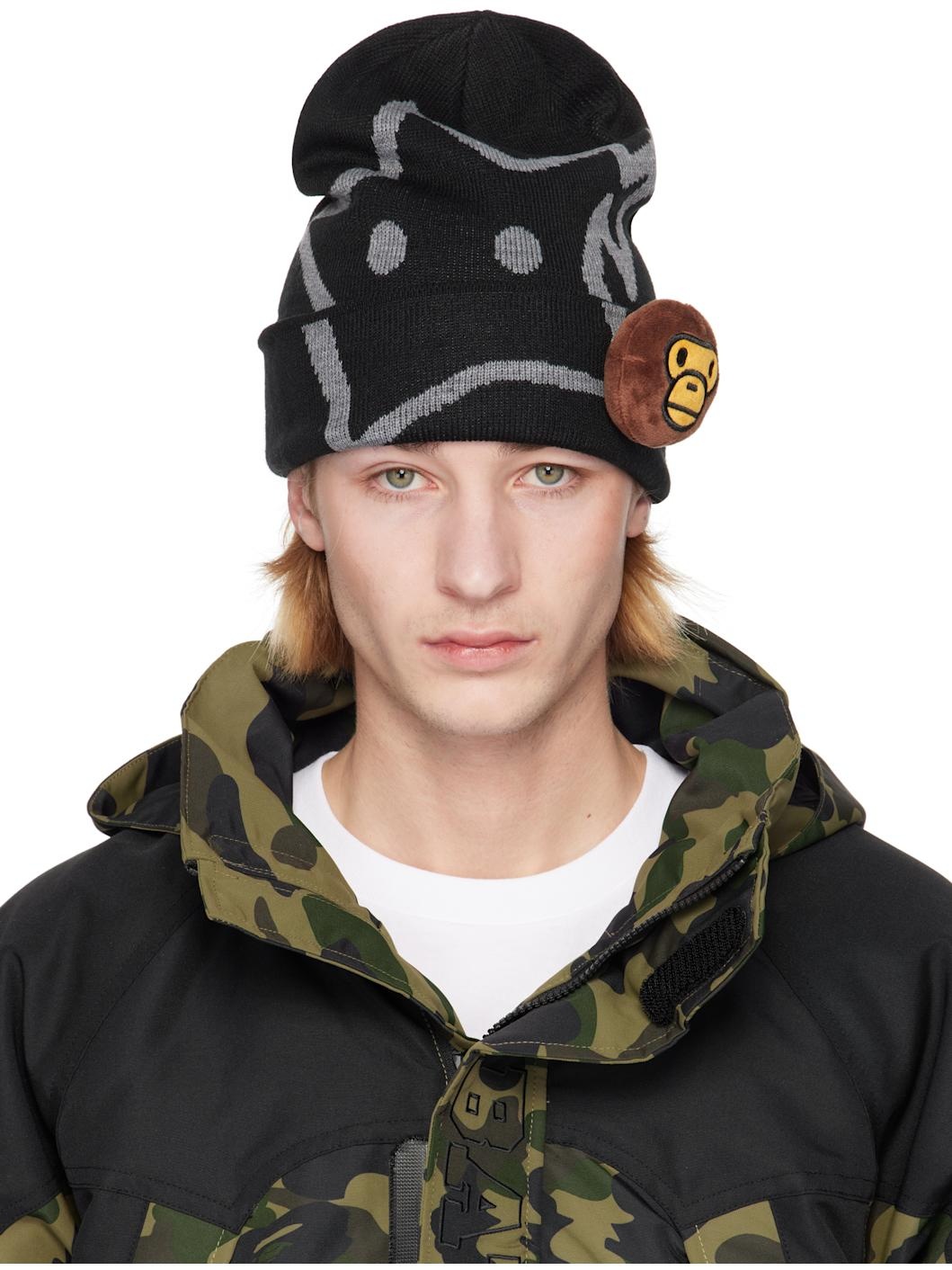 Knit beanie in black. · Jacquard logo graphic at face · Detachable logo applique at rolled brim · Logo flag at back face Supplier color: Black