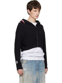 Cotton fleece hoodie. · Text and graphic appliques at hood · Graphic printed at hood and sleeve · Two-way zip closure extends at hood · Rib-knit hem and cuffs · Cropped hem · Logo flag at cuff Supplier color: Black 100% cotton. Made in Japan 252546M202003