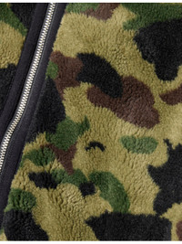 PRODUCT DETAILS - A Bathing Ape fleece jacket - 100% polyester; lining 100% polyester - Exposed zip fastening at front - Stand collar, long sleeves, two slanted zipped pockets at front, all-over camouflage print, branded tab at hem, binding at trims, silver-toned hardware, mesh lined - Hand wash - Model is 6ft 2in/1.88m and wears a size medium - Lightweight, non-stretch Ref: R04562065