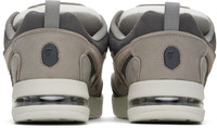 Low-top nubuck and buffed leather sneakers in gray and white. · Perforated detailing at toe · Lace-up closure · Logo patch at padded tongue · Padded collar · Graphic applique at sides · Pull-loop at heel tab · Logo applique at heel counter · Mesh lining · Transparent vinyl insert at foam rubber midsole · Treaded rubber sole Supplier color: Gray