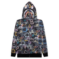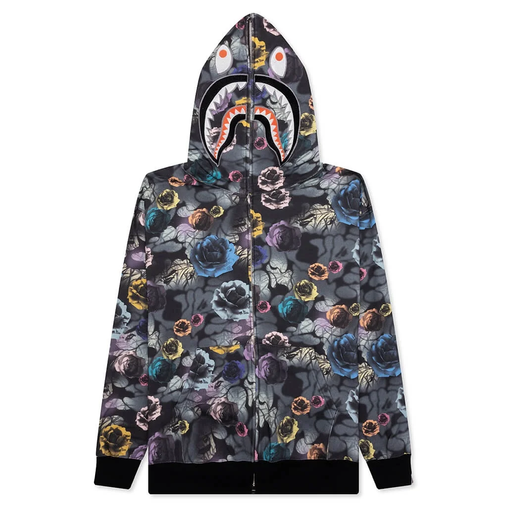 FLORAL CAMO SHARK RELAXED FIT FULL ZIP HOODIE - BLACK