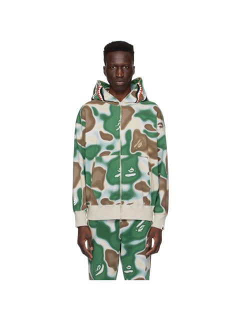 Cotton- and polyester-blend fleece hoodie. · Graphic appliqués and graphic printed at hood · Two-way zip extends to hood · Patch pockets · Rib knit hem and cuffs · Dropped shoulders · Graphic printed at sleeve · Logo flag at cuff Supplier color: Olive drab