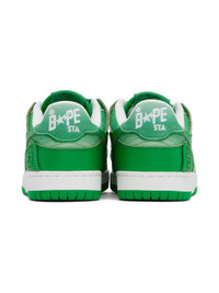Low-top paneled grained leather and suede sneakers in green. · Gradient throughout · Perforated detailing at toe · Lace-up closure · Logo flag at padded tongue · Padded collar · Logo appliqué at sides · Rubberized patch at outer side · Logo embroidered at heel counter · Mesh lining · Logo embossed at textured rubber midsole · Treaded rubber sole Supplier color: Green