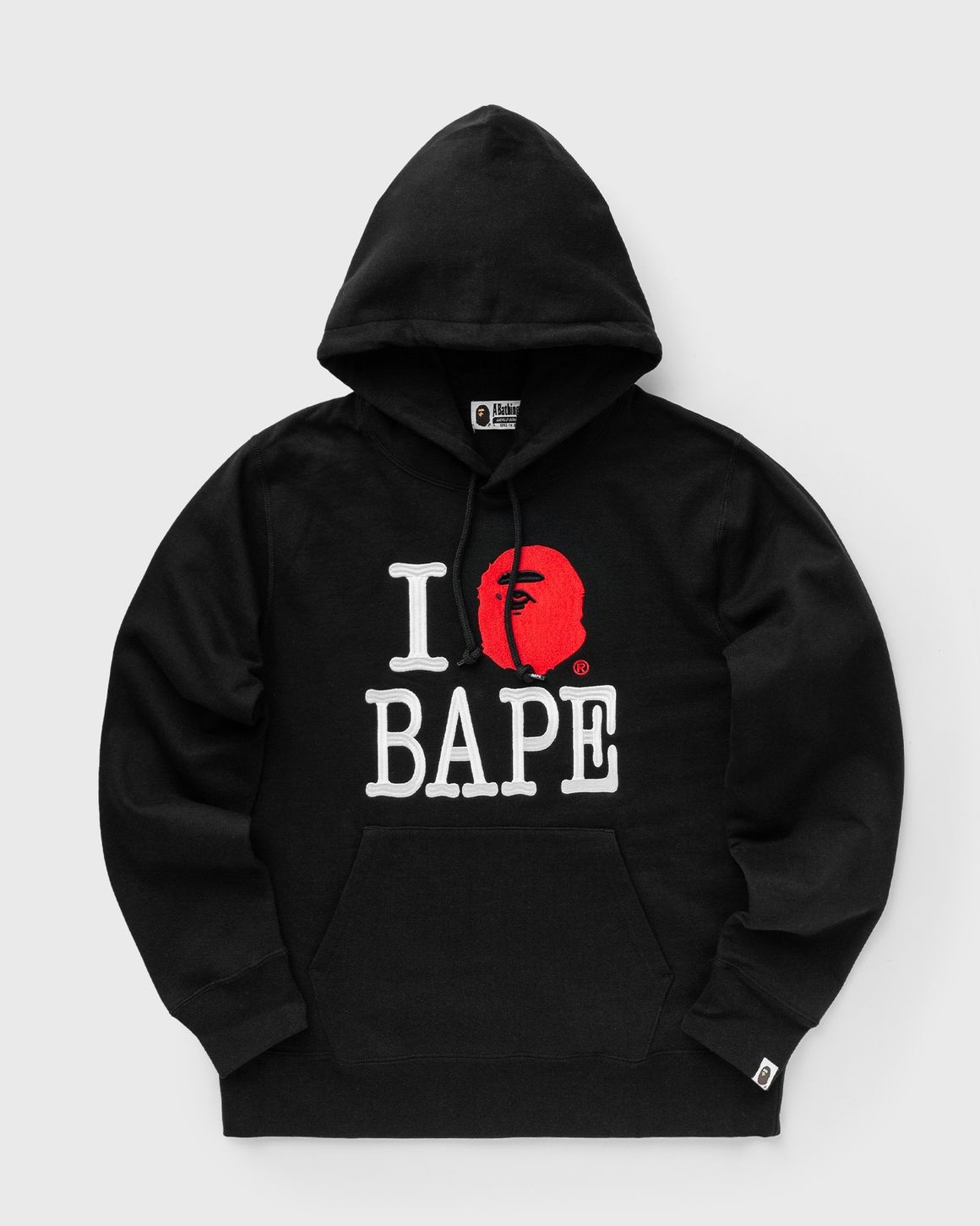 The product A Bathing Ape - I LOVE BAPE PULLOVER HOODIE in the color BLACK is available at BSTN.Use our Wishlist feature to get notified when the product or your desired size is available. Article Number: 001PPK801005MBLK Gender: Men Color: BLACK Material: 100% Cotton