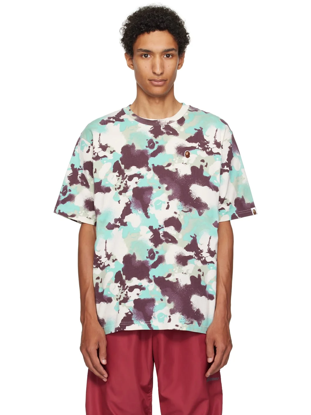 Blue & Purple Map Camo Ape Head One Point T-shirt