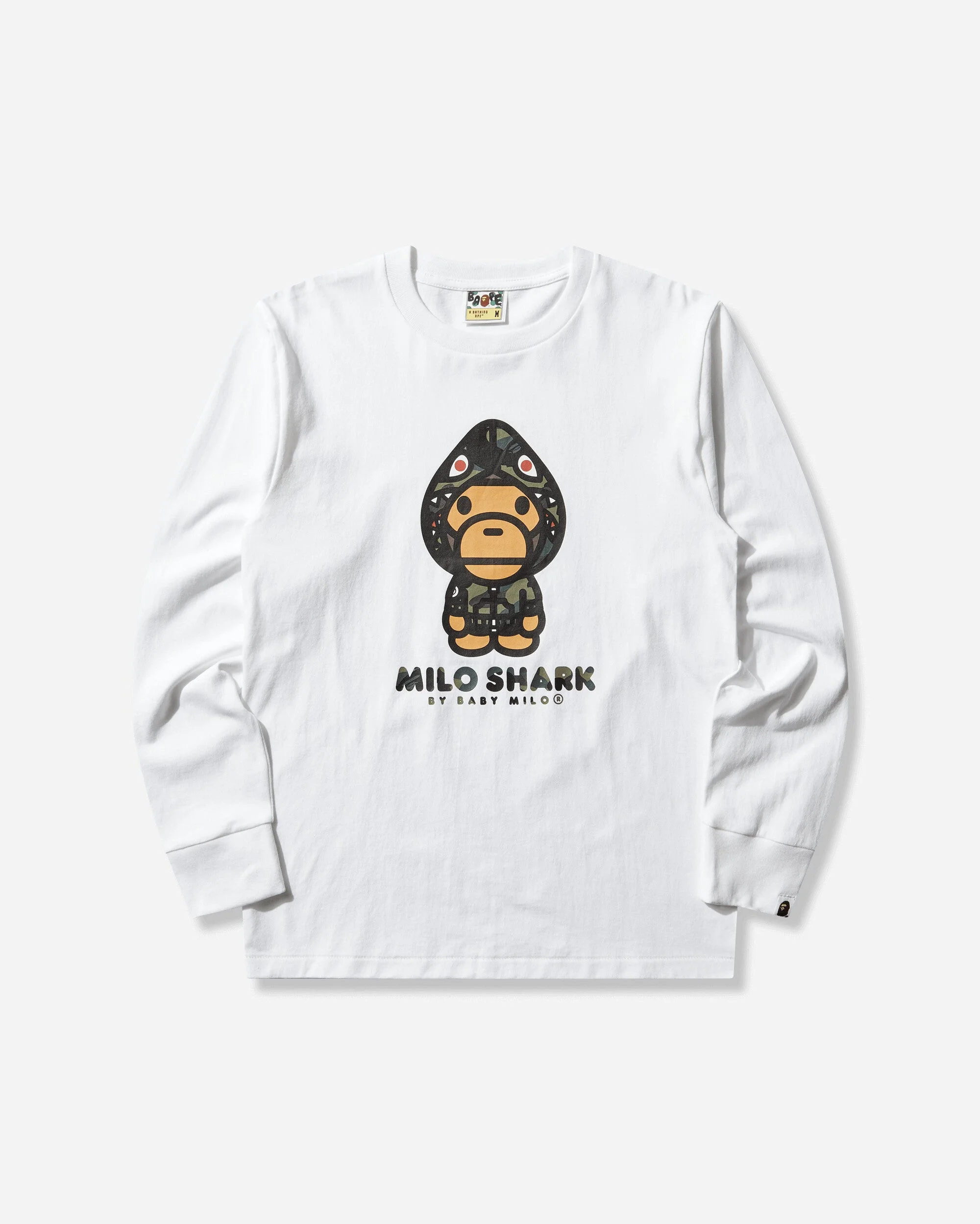 A Bathing Ape 1st Camo Milo Shark FZH Longsleeve T-Shirt White / Green Classic collegiate style meets contemporary streetwear with this essential 1st Camo Milo Shark FZH Longsleeve T-Shirt. Crafted for versatility, it pairs effortlessly with your everyday wardrobe while delivering that timeless varsity aesthetic. - 100% Cotton - Regular Fit - Ribbed Collar and Cuffs - Graphic Printed at Front - Style Code: 2L80111001 WHXGR