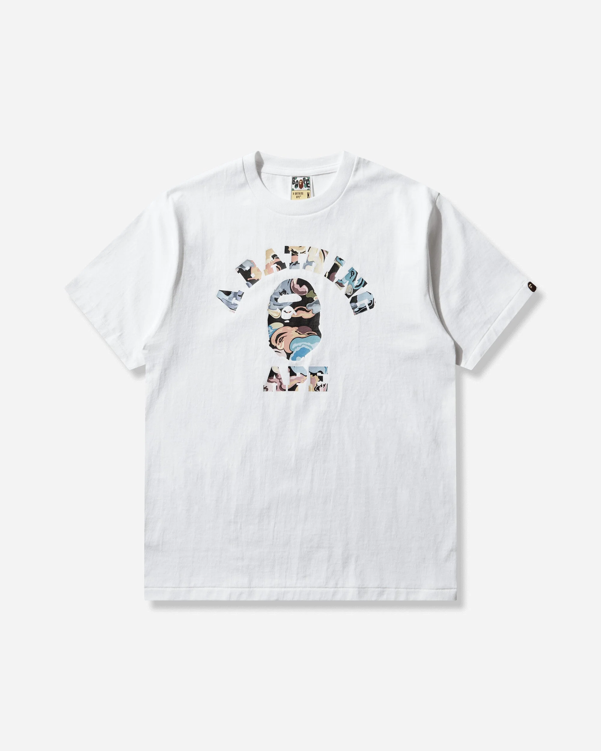 A Bathing Ape Art Camo College T-Shirt White Classic collegiate style meets contemporary streetwear with this essential COLLEGE TEE. Crafted for versatility, it pairs effortlessly with your everyday wardrobe while delivering that timeless varsity aesthetic. - 100% Cotton - Regular Fit - Ribbed Collar - Graphic Printed at Front - Style Code: 1L80110035 WHITE