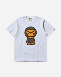 A Bathing Ape Big Baby Milo T-Shirt White Founded by Nigo in Tokyo in 1993, A Bathing Ape is one of the first and arguably the most iconic Japanese streetwear brands. Taking its name and themes from the original Planet of the Apes films, and guided by founder Nigo's pitch-perfect pop-art interpretation of underground scenes, the brand's cult status has only grown over the years. - 100% Cotton - Regular Fit - Ribbed Collar - Woven Branding Label at Sleeve - Printed Graphic at Front - Style Code: 2L80110002 WHITE