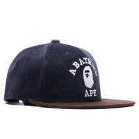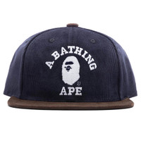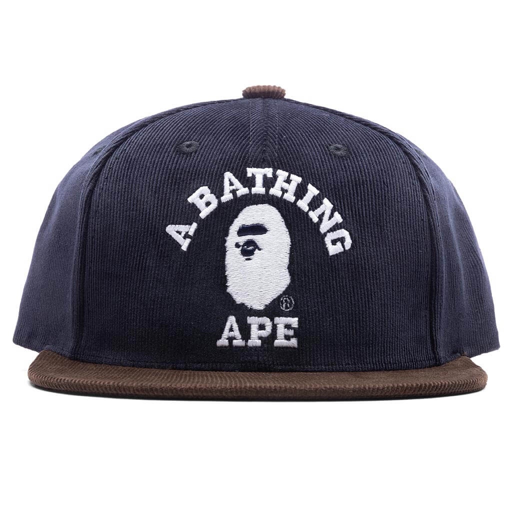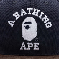 A Bathing Ape introduces the Corduroy College Snap Back Cap. Featuring a cotton construction, the design spotlights a six-panel aesthetic with woven eyelets at the crown. Embroidered BAPE branding resides at the face, while the flat brim is paired alongside it. The adjustable snapback closure completes the rest of the design. Style No: 001CPJ801008MNVY00F - Cotton construction - Embroidered branding - Flat brim - Woven eyelets - Adjustable snapback closure - Style No: 001CPJ801008MNVY00F