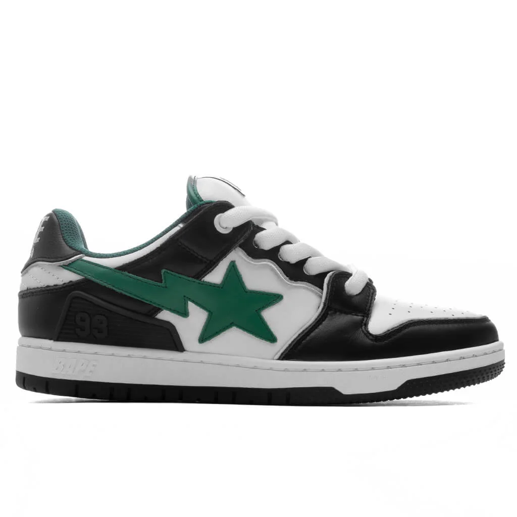The New Bape SK8 STA #1 M2 merges luxury materials with iconic design cues for a bold yet refined look. This sneaker features a smooth leather upper with the signature star logo applique at the sides. A rubber applique, logo patch at the padded tongue, and branded heel and heel tab reinforces its heritage. The shoe is finished with a perforated toe box, cushioned midsole, and treaded rubber outsole. EXCLUDED FROM 12 DAYS OF FEATURE PROMO. - Leather upper - Smooth leather overlays - Low padded collar - Label patch at tongue - Star logo applique at sides - Rubber applique - Branding on heel tab and heel - Perforated toe box - Rubber outsole - All sizes are listed in U.S. Men's sizing unless stated otherwise - Style No: 001FWL301311M-BLK