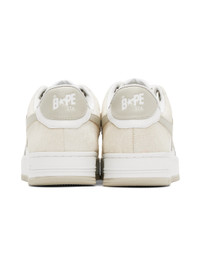 Low-top buffed leather sneakers in off-white. Calf-hair trim and perforated detailing throughout. · Logo plaque at lace-up closure · Logo patch at padded tongue · Padded collar · Logo embossed at heel tab · Graphic appliqué at sides · Logo embossed at outer side · Treaded rubber outsole · Logo-engraved silver-tone hardware Supplier color: Beige