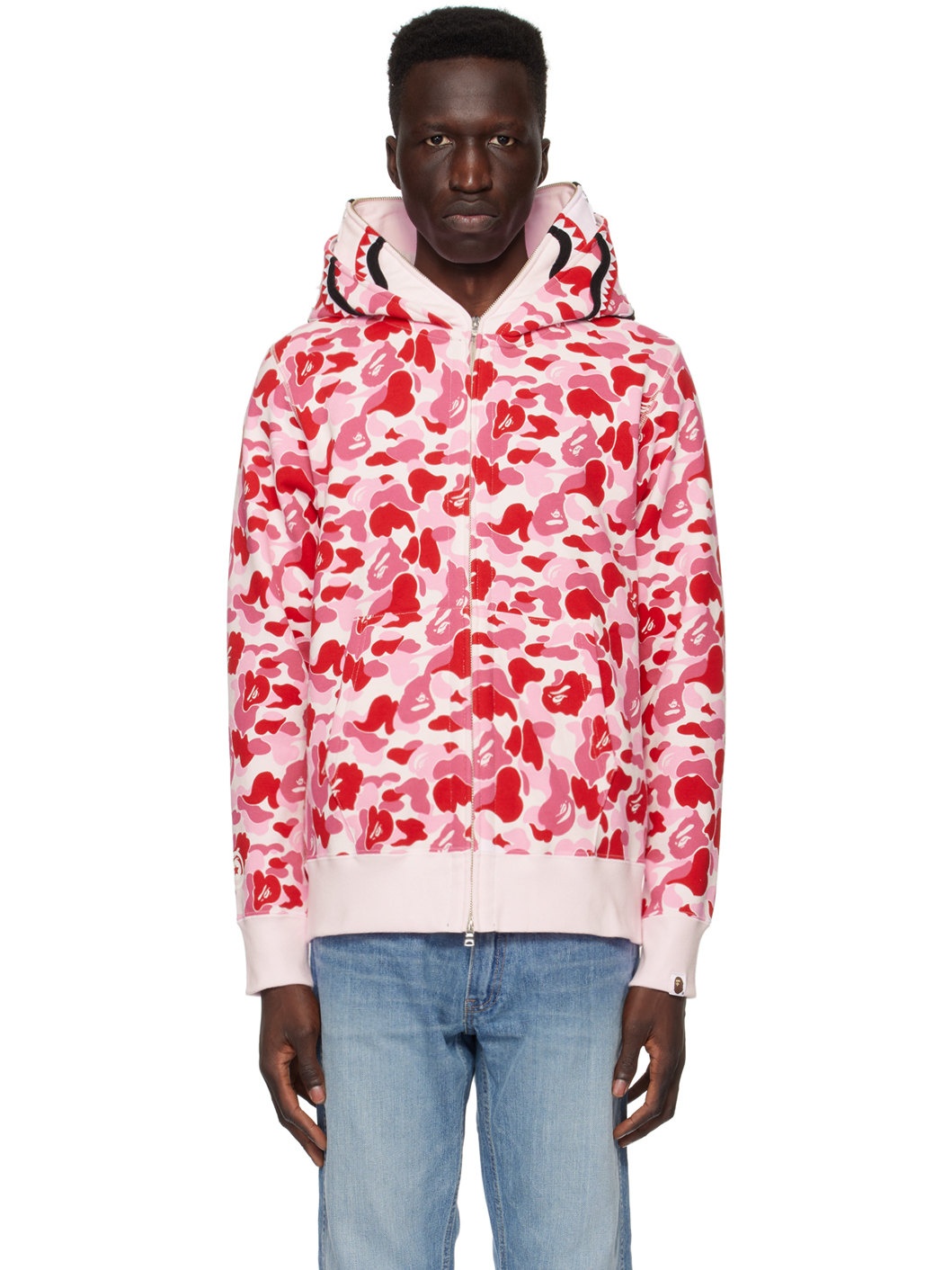 Cotton fleece hoodie. Camouflage pattern printed throughout. · Press-stud fastening at layered hood · Graphic appliqués and graphics printed at hood · Two-way zip closure extends to hood · Patch pockets · Rib knit hem and cuffs · Graphic printed at sleeve · Logo flag at cuff Supplier color: Pink