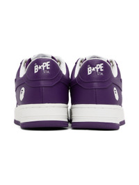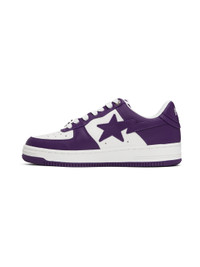 Low-top paneled buffed leather sneakers in purple and white. Leather logo appliqué at sides. · Perforated detailing at round toe and sides · Logo plaque at lace-up closure · Padded tongue and collar · Logo embossed at heel tab and outer sides · Logo embossed textured rubber midsole · Treaded rubber outsole Supplier color: Purple Upper: leather. Sole: rubber.