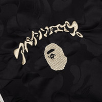 Celebrate the legacy of BAPE with the Reversible Souvenir Jacket. Making a statement in any wardrobe, the polyester design utilizes a button-down front closure and has a spread collar. The garment features a BAPE patch on the chest. Finishes include ribbed cuffs and a high-neck collar. - Zip-up front closure - Reversible - Embroidered branding - Slant pockets - Style No: 001LJK301309M-BLK