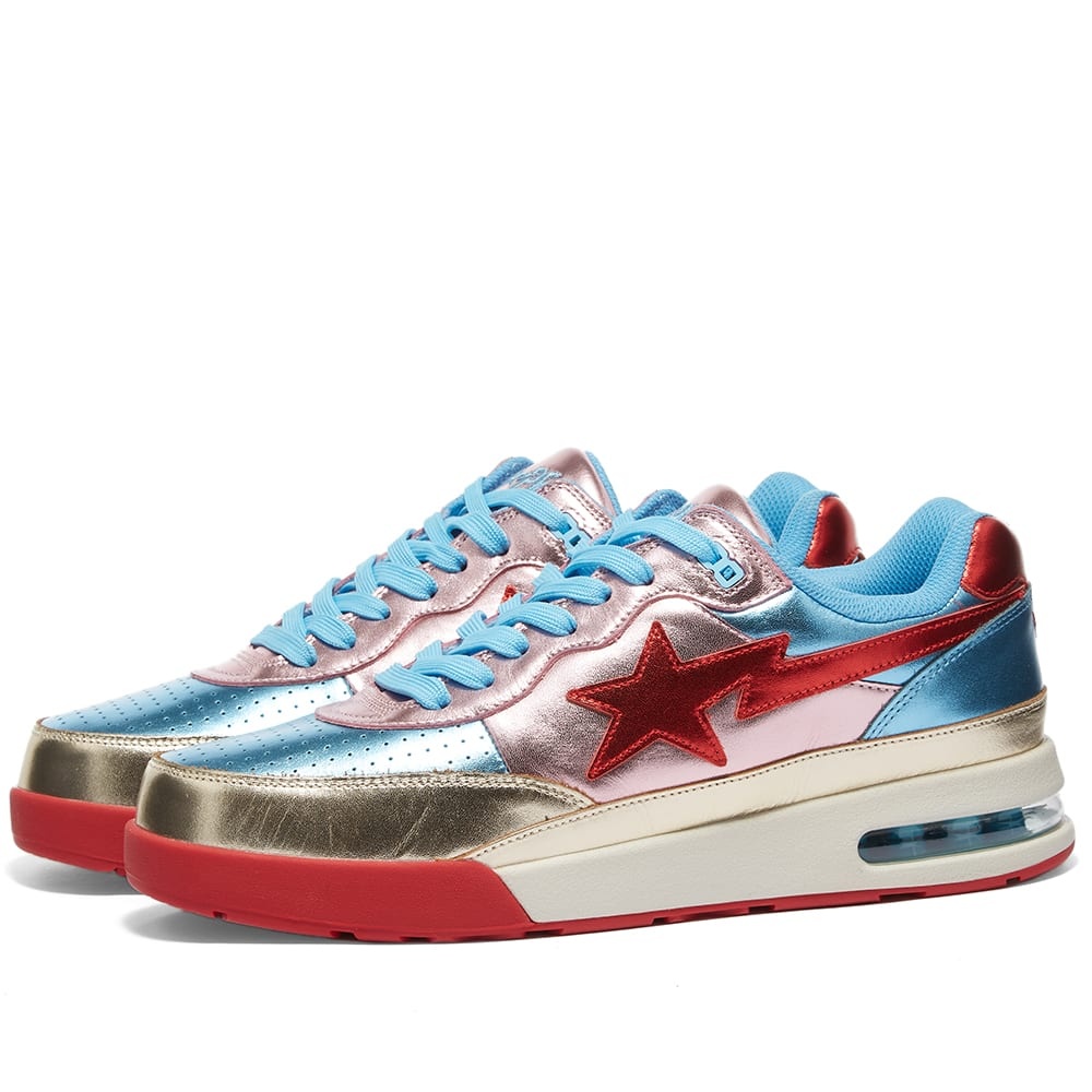 These bold STA low-top sneakers from A Bathing Ape are the perfect way to add some streetwear style to your looks. The blue and pink uppers are crafted from buttery smooth cow’s leather and feature a signature perforated toe box - ideal for all-day comfort. A foam midsole helps to cushion your feet, while down below, a sturdy red and white rubber outsole keeps your feet protected from the elements. The pair are signed off with embroidered branding on the tongue and a red leather star logo stitched to each side panel. - Cow Leather & Suede Uppers - Foam Midsole - Rubber Outsole
