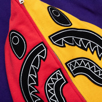 A Bathing Ape presents the Shark Full Zip Hoodie US—the newest addition to its iconic Shark hoodie collection. Adorned in playful color-blocking, the hoodie features a full-zip closure that extends up to the hood. Decorated with velcro loop patches, the hood showcases the signature Shark face logo and BAPE branding. Finished with ribbed trims and a kangaroo pocket. - 100% Cotton - Relaxed fit - Full zip closure to hood - Two-way zipper - Ribbed trims - Kangaroo pocket - Velcro loop patches on chest and sleeve - Velcro loop shark face patches on hood - Screen-printed graphic on bottom of sleeve - Woven brand tag at hem - Style No: 001ZPK701301M-NVY
