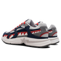 A bold evolution of BAPE’s signature sneaker design, the Shark STA blends premium materials with unmistakable street energy. This low-top silhouette arrives in a fresh colorway, constructed from a mix of materials like patent leather, suede, and mesh for a dynamic, layered look. Graphic appliques at the side panel nod to the brand’s iconic motifs, while a logo patch at the padded tongue and a branded heel tab reinforce its heritage. The shoe is finished with a mesh lining, cushioned midsole with logo detailing, and a treaded rubber outsole. - Leather construction - Mesh lining - Graphic appliques - Lace closure - STA logo - Rubber outsole - Style No: 001FWK201302M-NVY