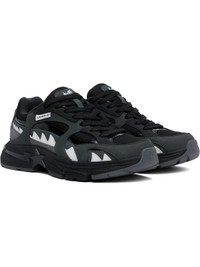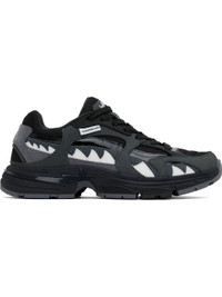 Low-top mesh, suede, patent and buffed leather sneakers in black and white. · Logo-embossed rubber cap toe · Lace-up closure · Padded tongue and collar · Logo embossed at tongue and heel tab · Graphic applique at sides · Logo flag at outer side · Mesh lining · Logo applique at foam rubber midsole · Treaded rubber sole Supplier color: Black