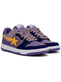 Low-top suede and nubuck sneakers in purple. · Perforated detailing at toe · Lace-up closure · Logo patch at padded tongue · Padded collar · Graphic applique at sides · Logo embroidered at heel tab · Mesh lining · Treaded rubber sole Supplier color: Purple